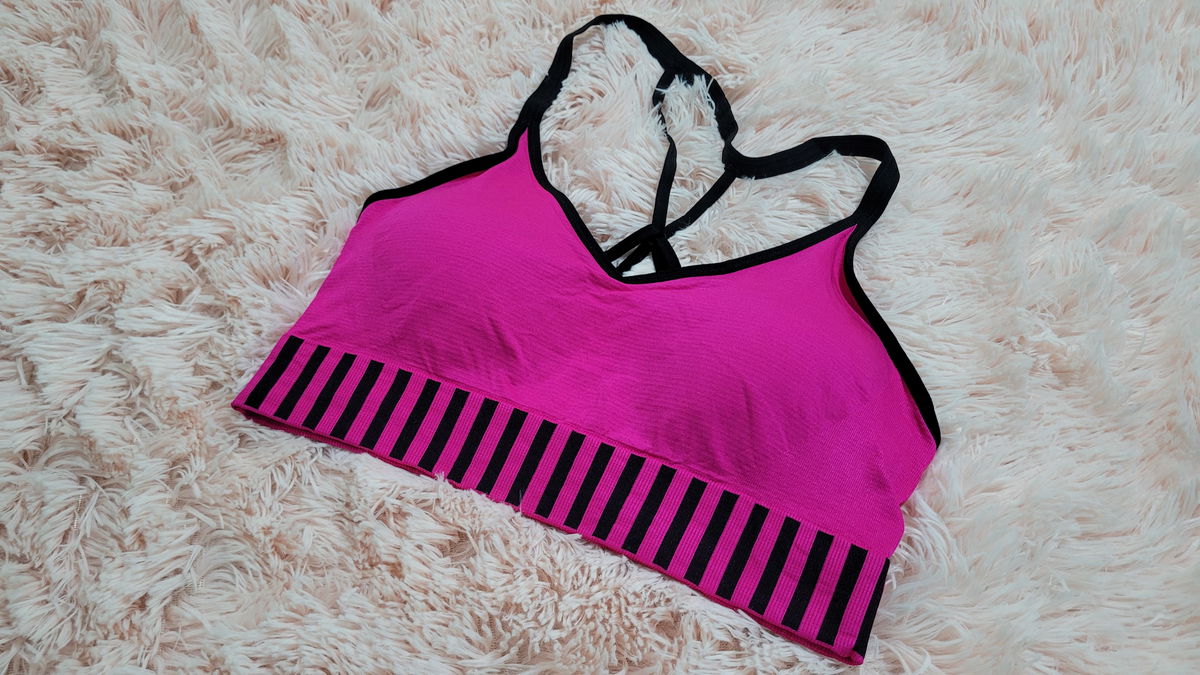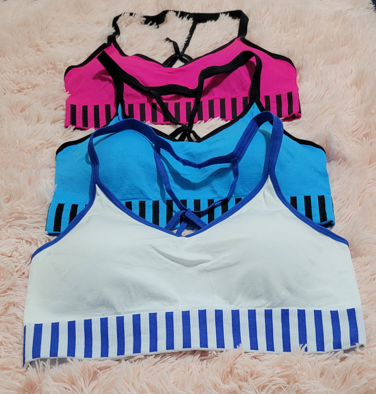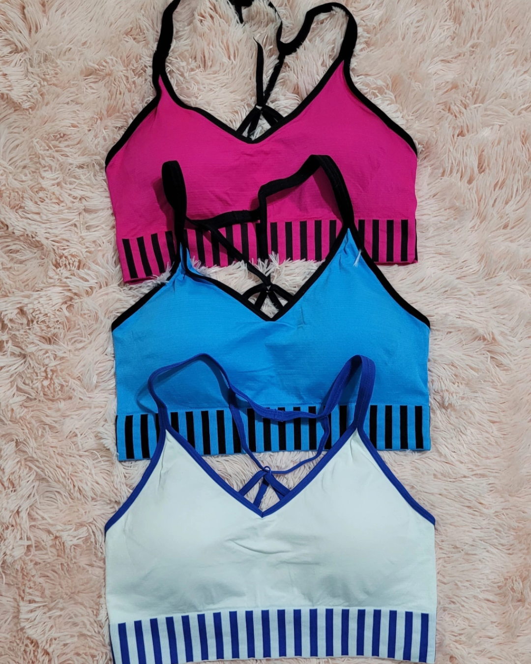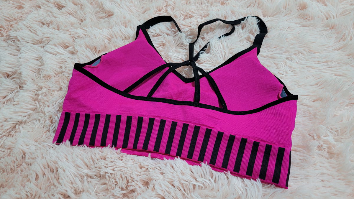 Top importado tipo deportivo con tasas desmontables, espalda con tiras cruzadas. Línea seamless, calidad premium