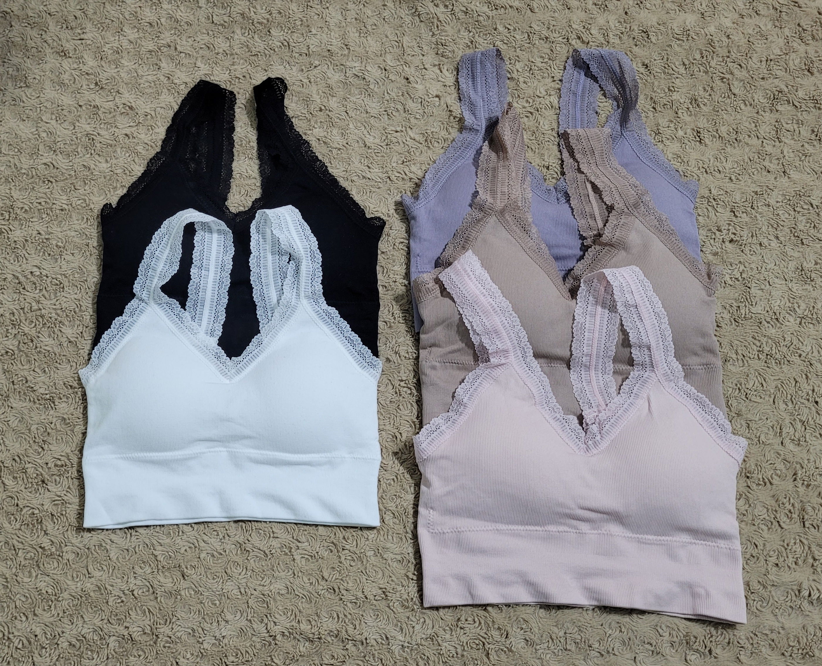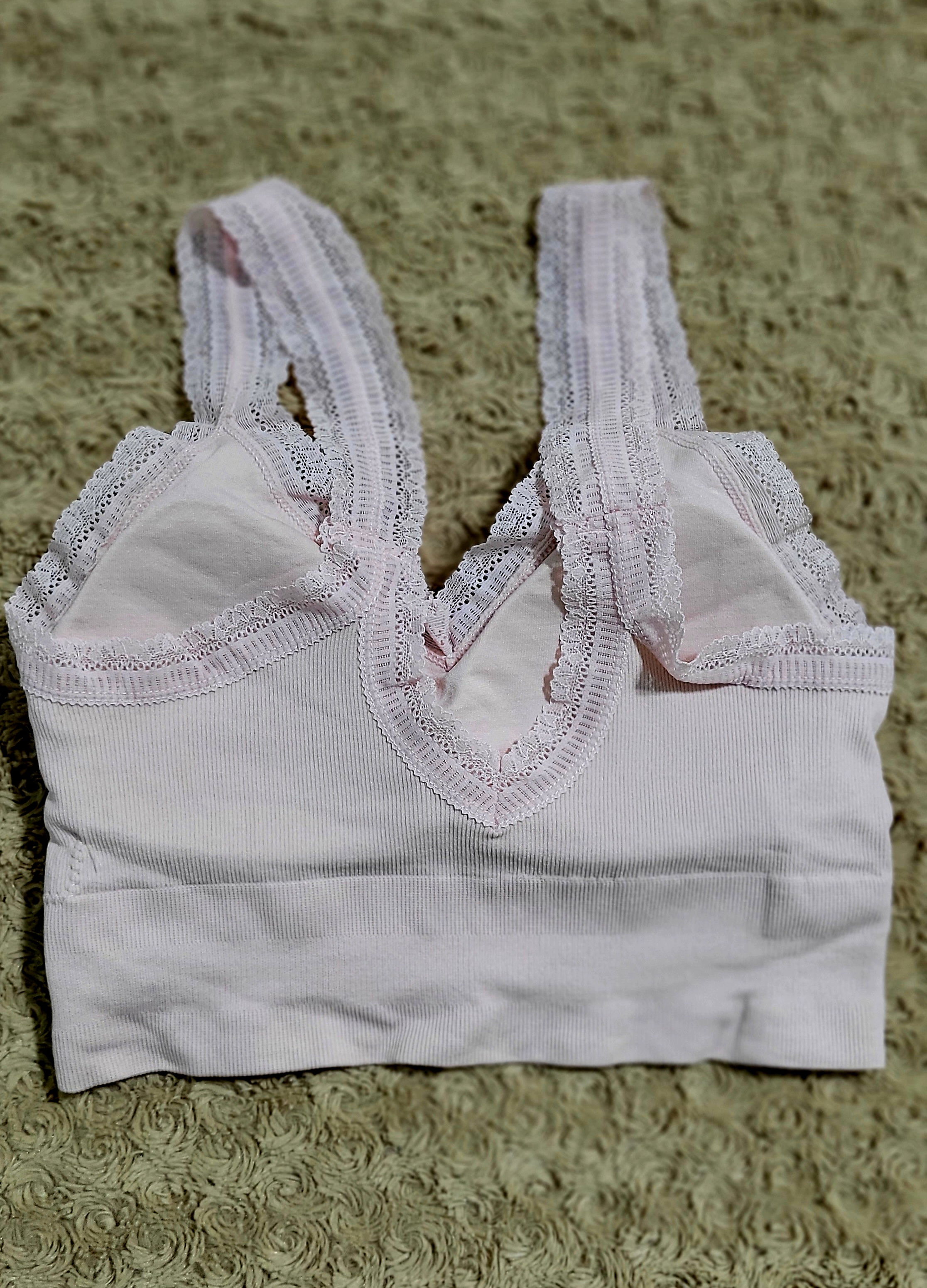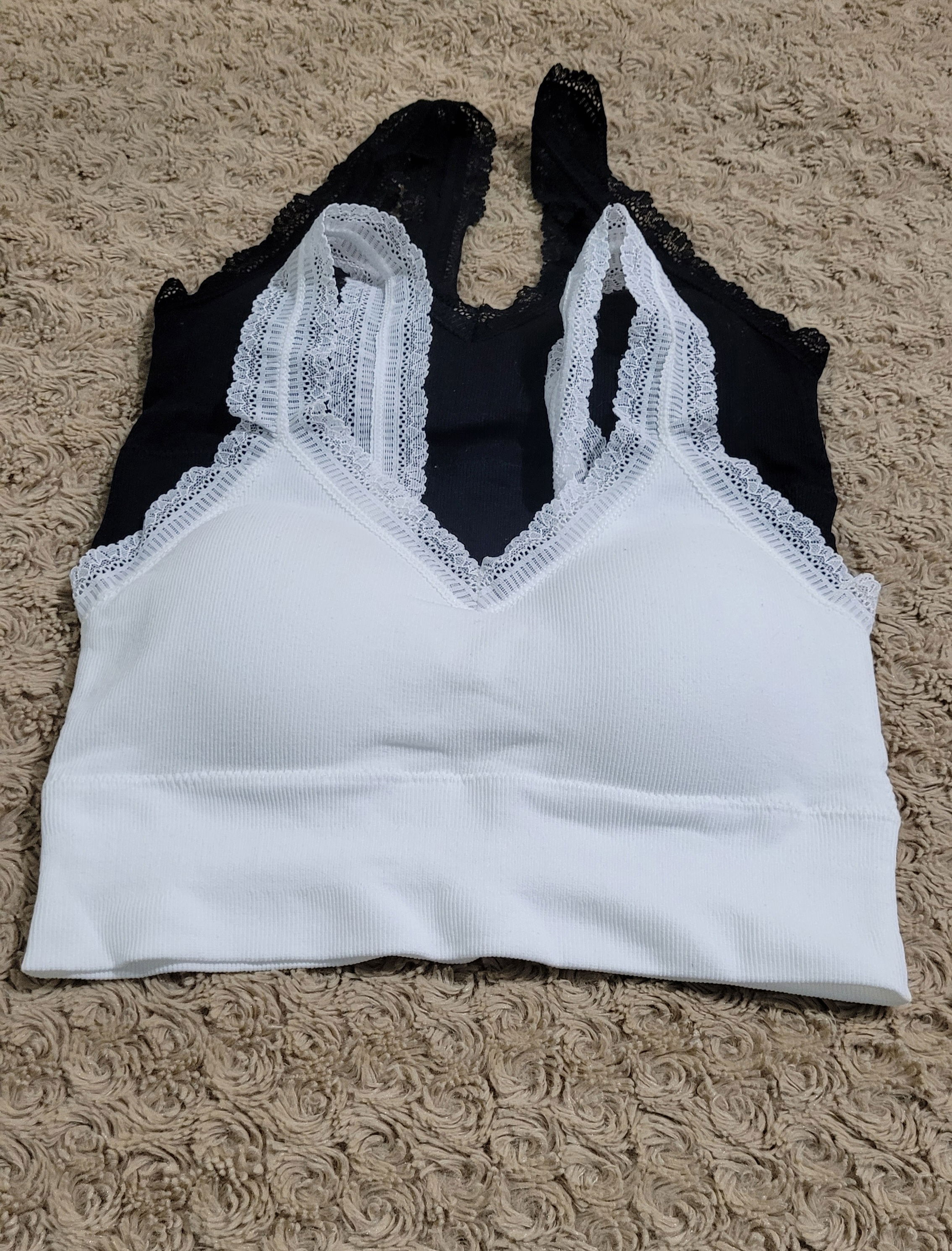 Top morley con breteles de puntilla, espalda en V. Tasas desmontables.