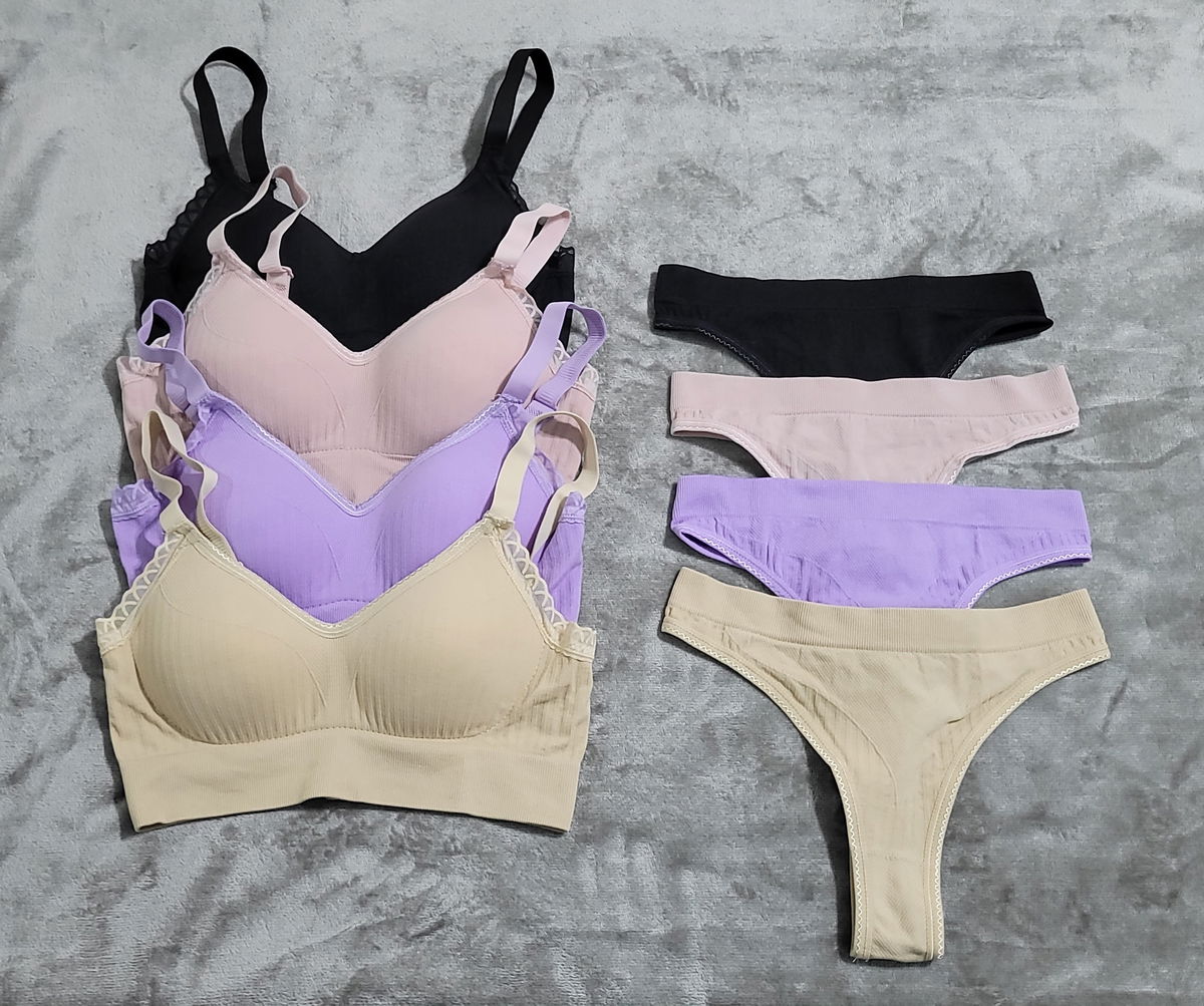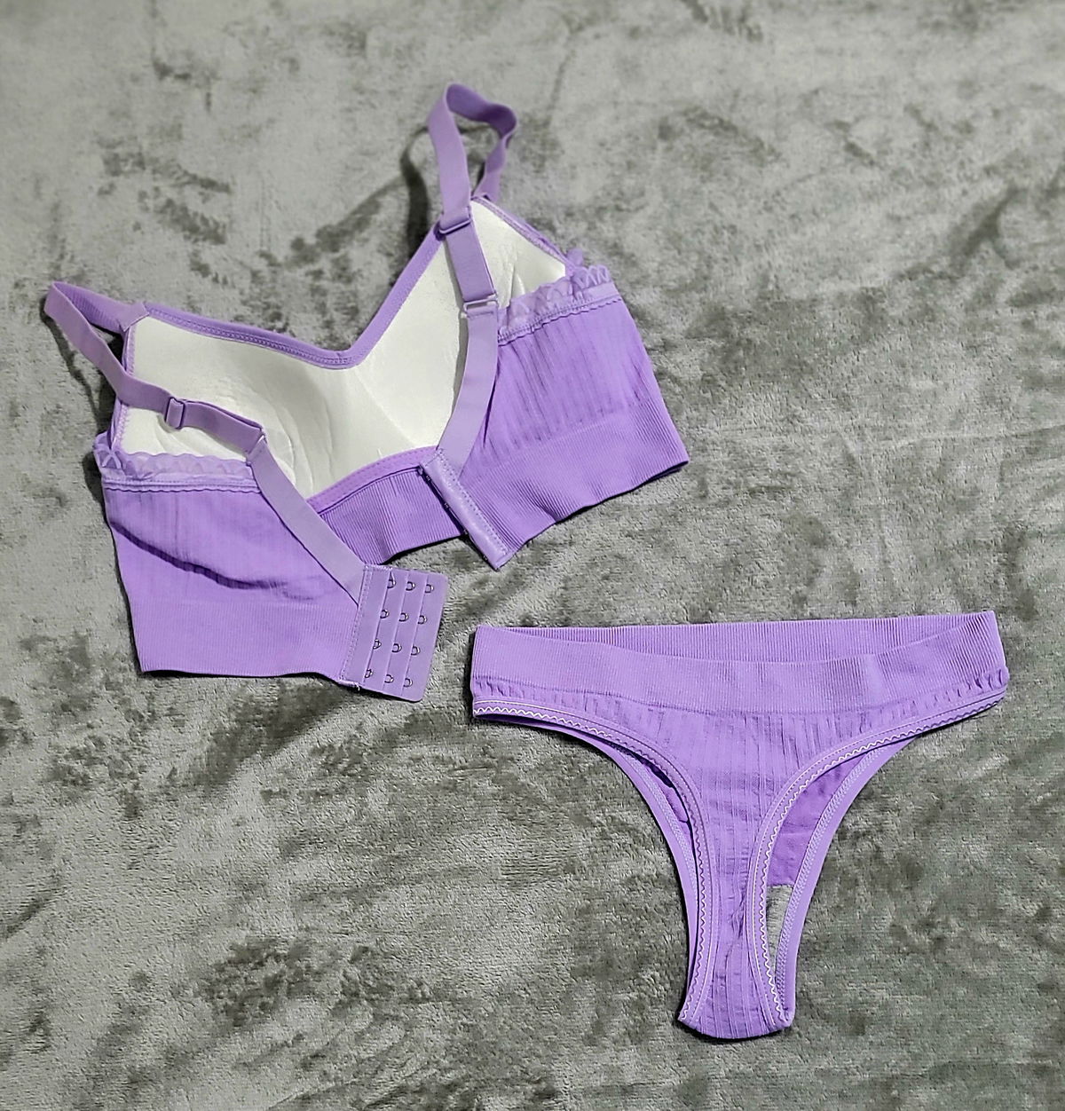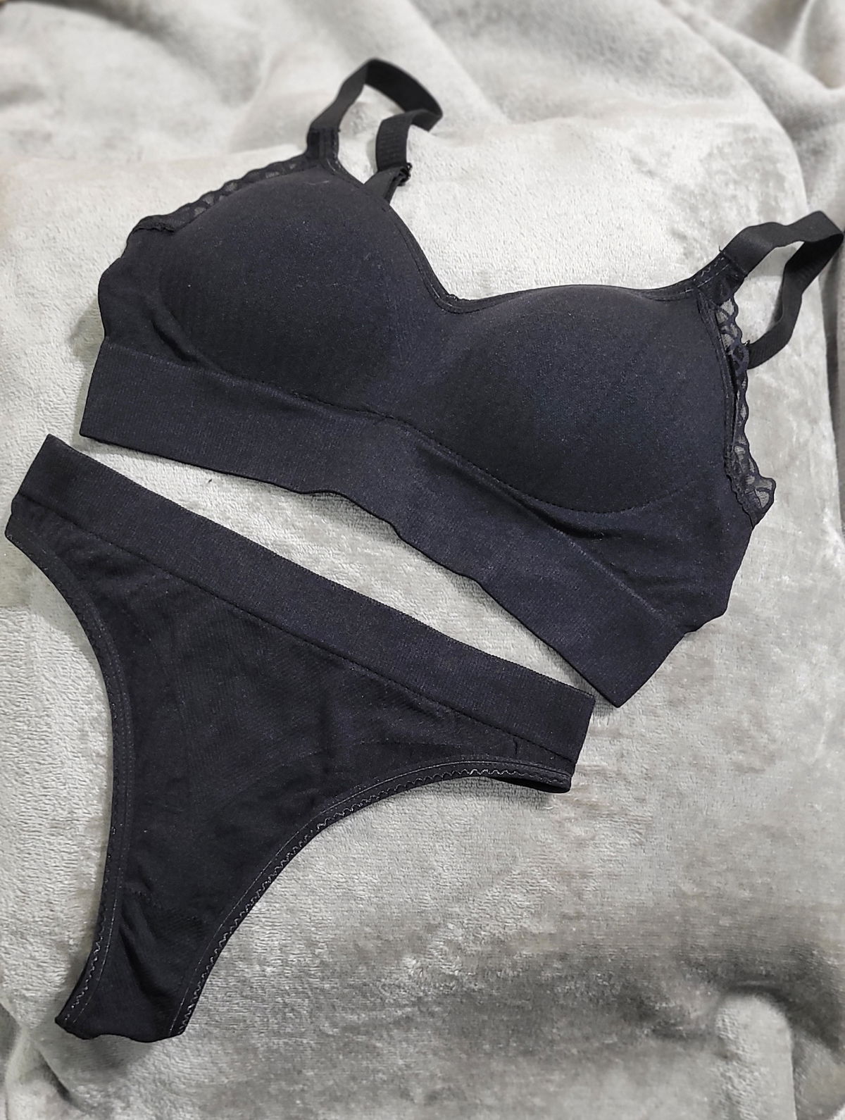 Conjunto de corpiño morley con detalles en puntilla, espalda en U, relleno soft fijo, breteles regulables, cierre de 4 broches, contorno amplio. Les haciendo juego